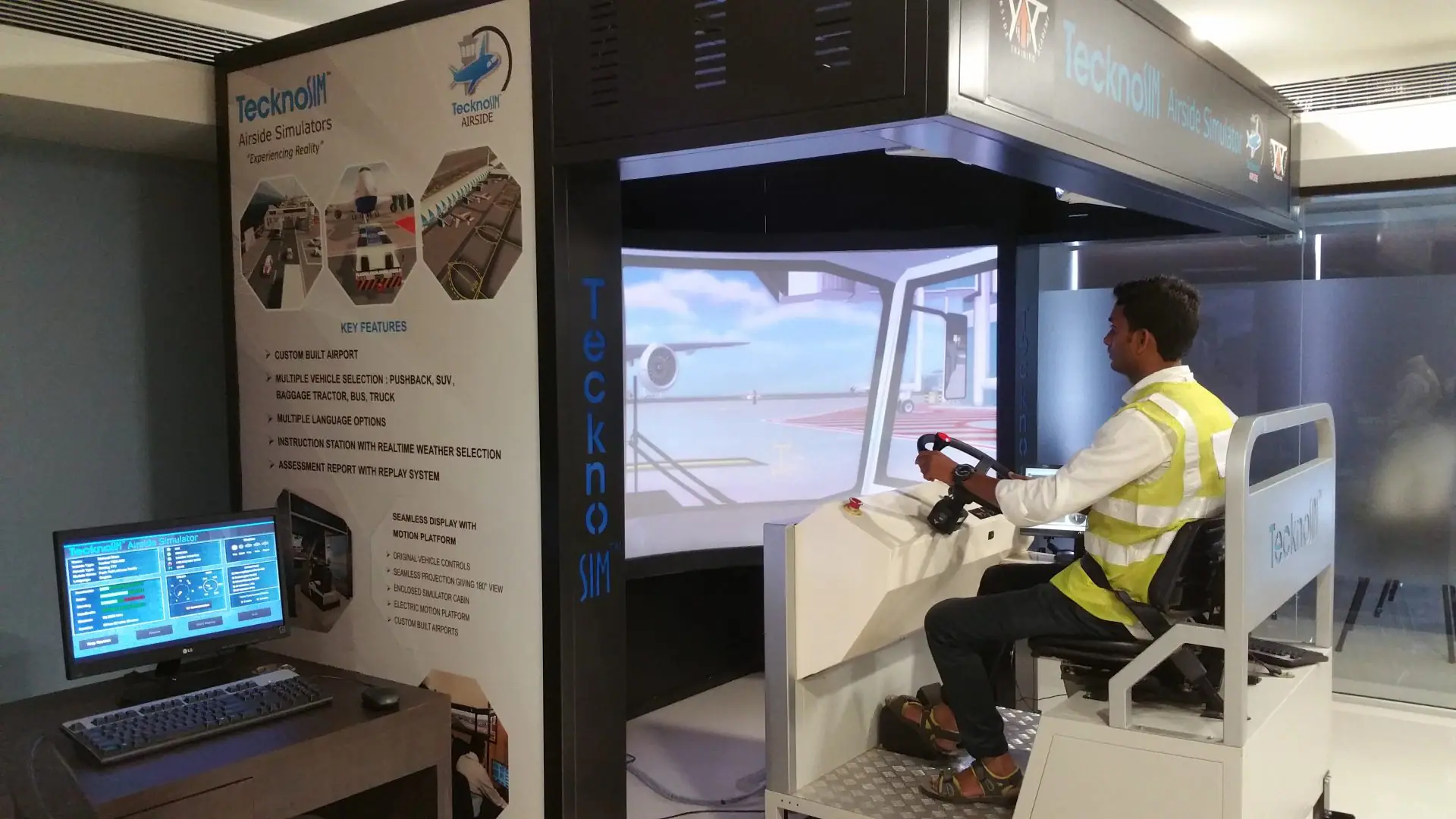 TecknoSIM Airside Training simulators developed by Tecknotrove Systems Mumbai, is an advanced training tool that is designed to prepare the airside operators and drivers on different weather conditions, time of the day, low visibility, safe driving and operating techniques.