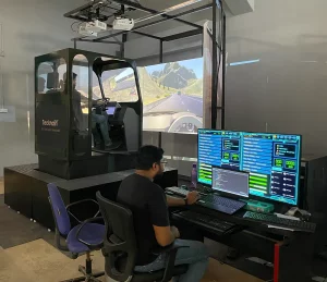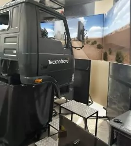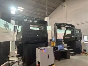 The driving station is a simulated cabin of the original vehicle with fully functional controls and a force feedback steering wheel in ergonomically correct ergonomic locations to ensure a realistic training experience. Driving Station could be an actual cabin or a mock up cabin including an LED instrument panel with a reconfigurable glass dashboard, displaying gauges, indicator lights, and switches for enhanced realism allowing trainees to switch between different vehicle configurations .Simulators are adaptable for both right- and left-hand steering, with necessary software and hardware modifications to support various configurations.